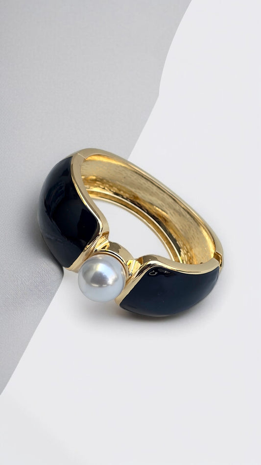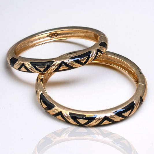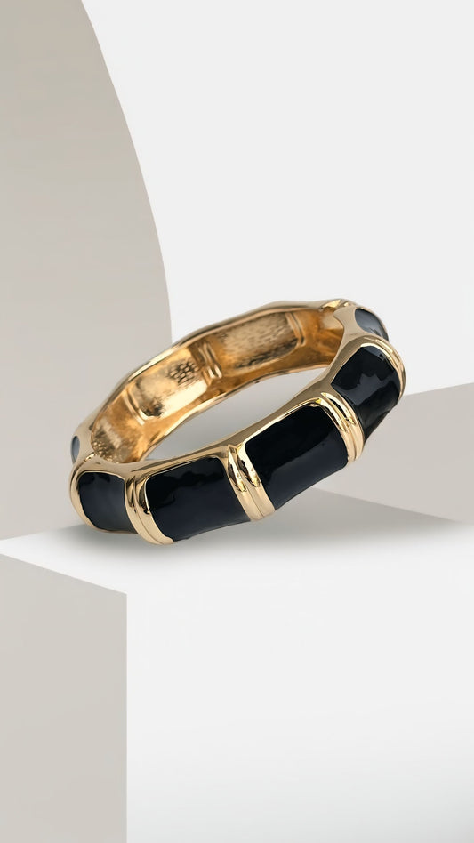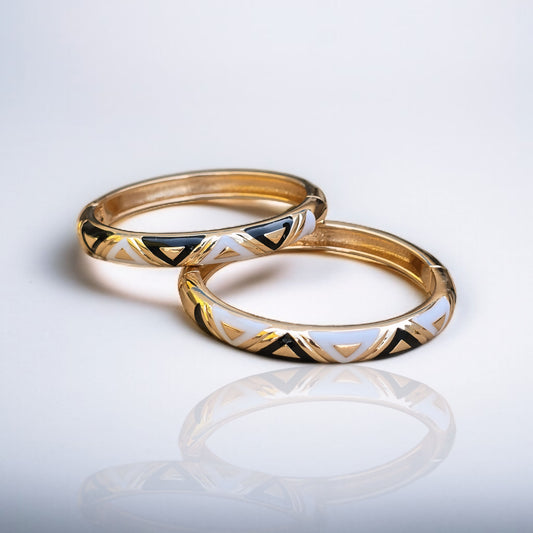The Morni Enamel Triangle Bangle adds a touch of elegance to any outfit. Its black and white enamel design with gold plating makes it perfect for both festive occasions and daily wear. I've received numerous compliments!