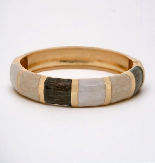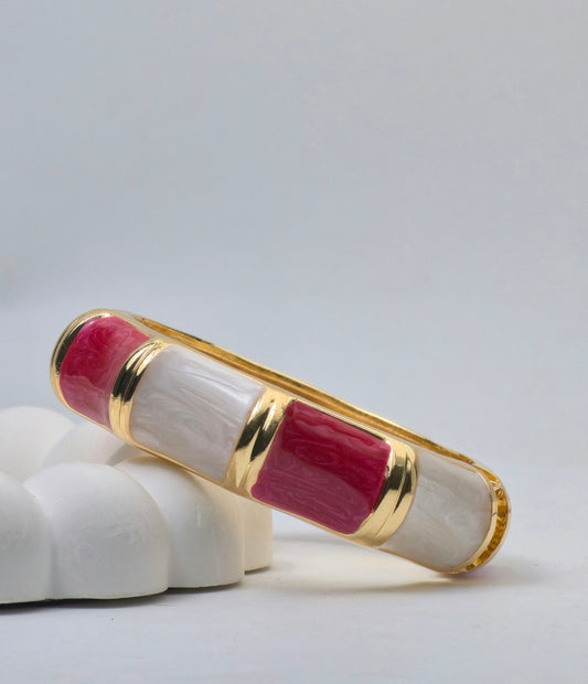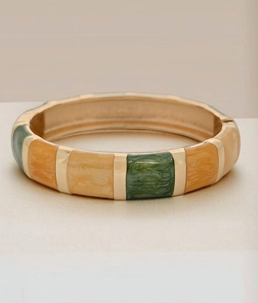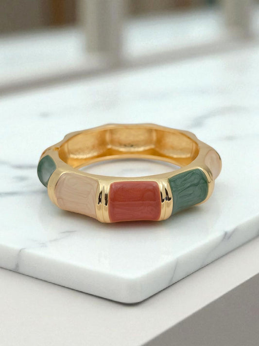 The craftsmanship of this bangle is outstanding. Even after wearing it multiple times, it still looks brand new. The enamel finish is smooth, and the gold plating hasn't tarnished.